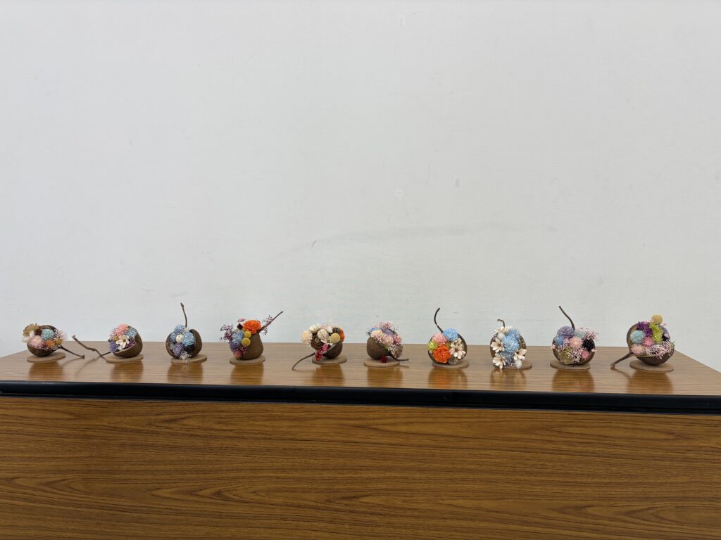 そして、たくさんあるお花や実を好きなだけ自分で選んで配置していくから全然違う印象の作品ができていく。